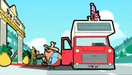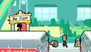 Downstairs, Wicket shatters her piggy bank in a fit of rage, revealing only £1 pound inside. She hears Bean building something outside, which is a sign says 'The Palace'. Bean dresses Teddy as the Queen's Guard. After Bean goes inside, an American tourist stops by, fascinated by the sign. Inside, Wicket tries to get Miss Wince's bag so she can steal her money which Miss Wince, as expected, won't give it to her. The tourist pictures them; after he leaves they continue fighting for the bag. While Bean is playing queen, the tourist enters his room, shocking him and making him remove the crown. Bean tries to tell the tourist that The Palace isn't the real Buckingham Palace but he just keeps on picturing the decorations. Wicket enters Bean's room and gets angry at Bean for changing it. The tourist, satisfied with Bean's room, leaves £5 on the bowl. Wicket gets Bean's crown and, seeing this as an opportunity to gain money to pay her bills, becomes the queen and makes him her slave. Wicket sees the £5, happy that she can now earn money to pay her bills.