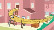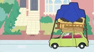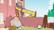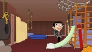 Bean returns to the tool store and requests nets, drain pipes, lots of rubber seating, plastic dustbin, lots of sponges, and 300 balls. The cashier gets the items for Bean then Bean returns home with all the necessary equipment. When Bean opens the door, the balls fall off his Mini. Mrs. Wicket is reading her book when she hears noises coming from Bean's room. In Bean's room, he's finished setting up his indoor playground. He uses his tub as a ball pool; he about to jump when he hears knocking. Bean answers the door and Wicket appears, asking Bean what's all the noise. Wicket sees Bean's bouncy bed and jumps on it, remembering that she used to enjoy this when she was younger. Bean is relieved because Wicket actually enjoys his playground. Wicket then points to a slide from Bean's window; she then slides down when Bruiser Sr. and Bruiser Jr. spot her sliding. They both want to join the fun. Bean is about to slide when he hears a knock again. He answers the door and it's Wicket, who tells Bean she enjoys the slide; then Bruiser Sr. and Bruiser Jr. join in. Bruiser Jr. slides then two kids who see him slide want to join as well. There is now a long queue to the slide Bean made. Even though Bean made the slide, Bruiser Sr. tells Bean to wait for his turn when Bean talks to him. Bean sadly goes outside and four kids are at the door, wanting to join in as well. Bean closes the gate and it still makes the squeaking noise; he realizes he forgot to buy oil. Bean returns to the tool store and sees the playground is empty. The guard sees Bean looking through the window outside, Bean leaves knowing that he will be asked to leave but this time she lets him in because there's plenty of room. This time, Bean is happy that he can finally play in the playground so he jumps to the ball pool, happy that he is now allowed to play in there.