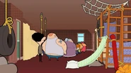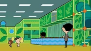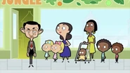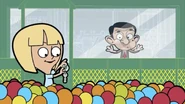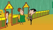 Inside the store, the father leaves his son to play in the play area while he stays in the cafe. Bean pays the guard but she doesn't let him in because the cafe's in the other way. But Bean wants to go to the play area to which the guard denies him entry because it's for kids only. Angry, Bean storms off while the mother and daughter look at him weird then the daughter goes to the play area and her mother goes to the cafe. Outside, still wanting to go to the ball pool, Bean goes to the back of the line and talks in a high-pitched voice while the kid in front of him gives him a strange look. Bean sneaks in the play area while hiding behind four kids. Inside the play area, Bean is happy he's near the ball pool and he jumps in, causing a tidal wave of balls that nearly drowns the kid playing there. Bean dives in the balls pretending to be a shark while the child gets scared. The child leaves and goes to his mother just as Bean emerges from the balls. The guard spots him so Bean hides in the balls. She goes to the ball pool to look for Bean. Bean escapes and swings in the ropes and falls to a bouncy bed, causing the kids playing to bounce off and land to the laps of parents. Bean jumps on the bouncy bed and Susan’s Mother tells the guard to deal with Bean. Bean wonders where to go next and he goes to the snake slide even removing the kid out of his way. He slides down and returns to the slide, still removing the kid out of his way. Bean returns to the slide so the kid gives way for Bean. He slides down and the guard and the parents confront him; the guard kicks him out and reminds Bean that it's for kids only.