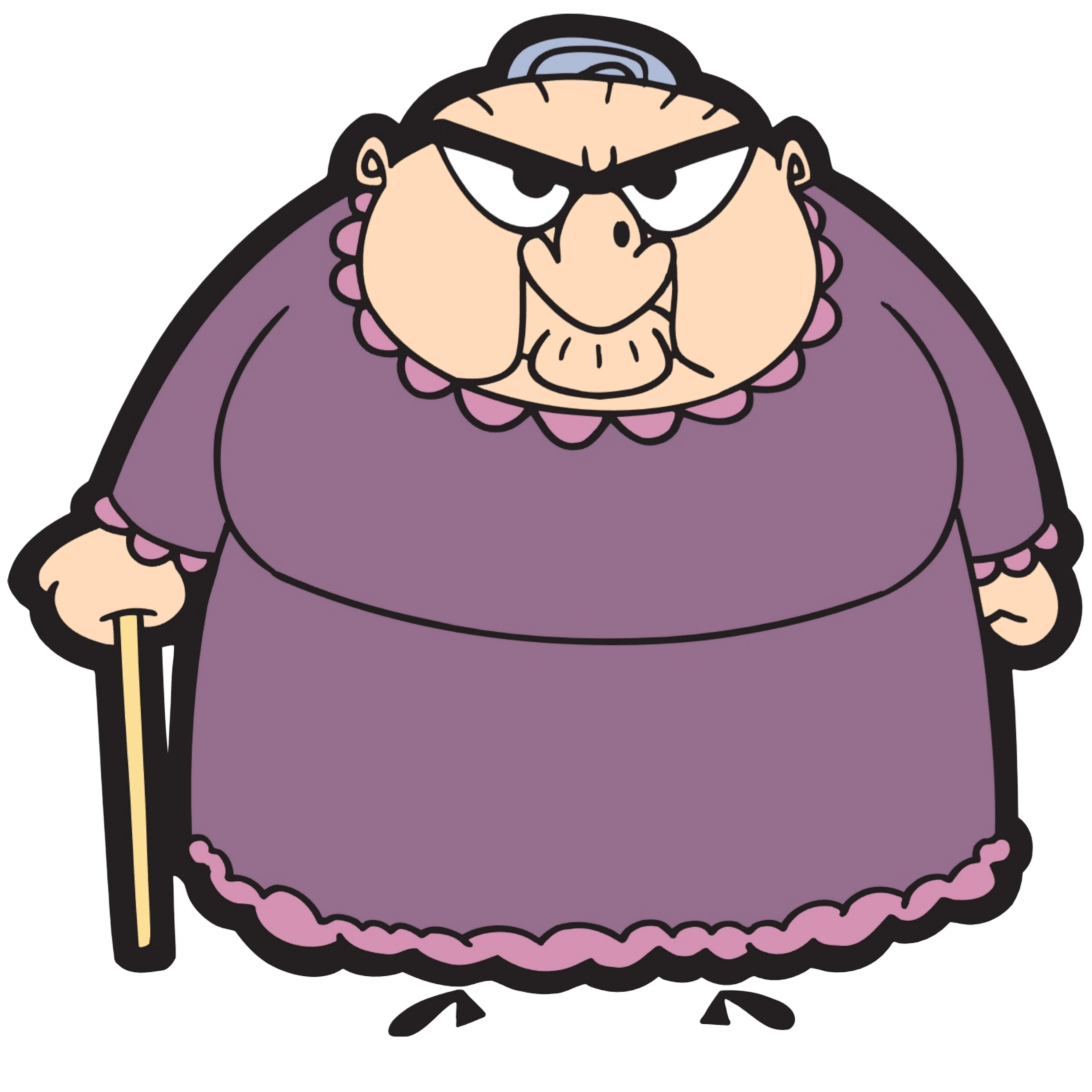 - When walking, she is almost always seen with her cane, which she also uses to attack Bean when provoked enough.