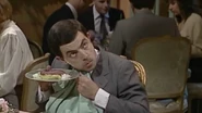 Mr. Bean goes to a restaurant on his birthday and orders a steak tartare (after gifting a birthday card to himself and getting surprised by it and showing it off and then endeared by what he wrote himself), which he expected to be a regular steak. A waiter comes by offering him to try the house wine, which he swiftly drinks and stares at the waiter smiling. As he's about to pour some more, Mr. Bean declines, saying he's driving and he may end up drunk driving. Then he shows off the napkin the waiter brought him, only to lose it when it flies towards a neighbouring table and he pretends it's not his. Once the steak arrives, he is disgusted by the tartare's taste and appearance (assuming it is half-cooked), so he cuts it up and hides the pieces in different places (ashtray, tiny vase, hollowed-out roll, under a plate, sugar basin, violinist's trousers, handbag). The violinist won't walk off until Mr. Bean has a bite, and as soon as he turns around, Mr. Bean spits it down said trousers. Conveniently, a waiter walks by and gets tripped by Mr. Bean's leg while Mr. Bean is hiding his tartare in the woman's handbag. He spills his tray onto Bean's table, which provides him with an opportunity to cover up his actions by showing the waiter and the maitre d' that the tartare has ended up inside the vase, inside his bread, under his plate, in the trousers, and in a handbag. The maitre d' apologises and promptly moves Mr. Bean to another table, where the waiter brings out a free dish, which, unfortunately for Mr. Bean, is another steak tartare, seemingly bigger than the first. Although Bean is appalled, he must eat it, as the maitre d', the waiter, and the violinist are all watching him.