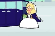 Having arrived, he parks his car and tells her to wait inside. Inside his apartment, he opens his wardrobe and puts on a blue suit jacket. He steals Mrs. Wicket's bra from her laundry basket to make his car appear as a wedding car. As he is about to go, he remembers about his flowers. He runs back into his home, much to Regina's dismay.